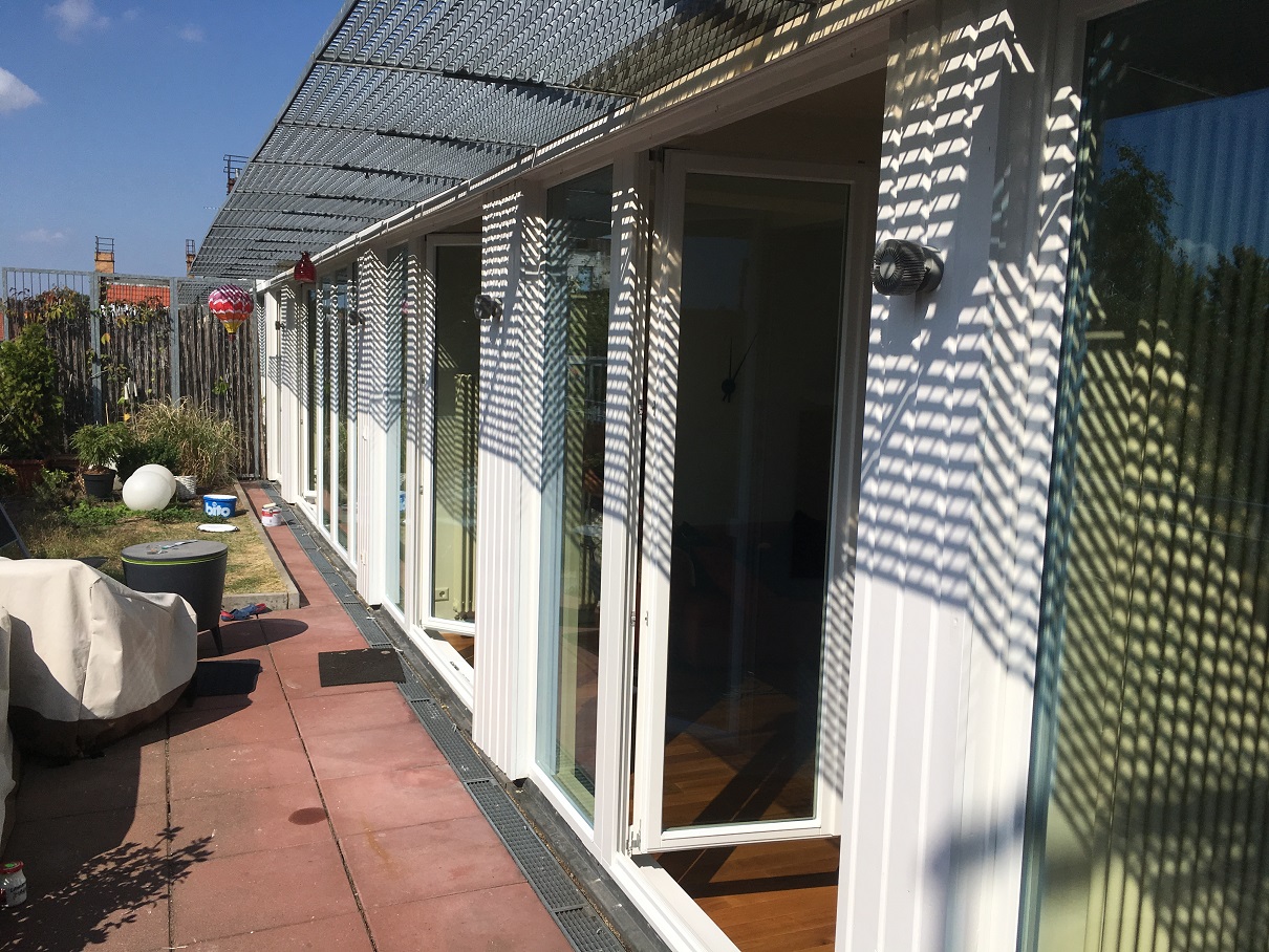 Fassadensanierung und Balkonbeschichtungen, Obere Wörth Str. 22. Es wurde eine Fassadensanierung geplant und wie folgt realisiert: Bewuchs entfernen, partielle Putzausbesserung, Sockelerneuerung, Fensterneuabdichtung, Dachkastenanstrich, Anstrich von Balkonbrüstungen, Balkonbeschichtung, Fassadenanstrich.